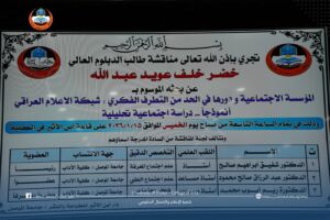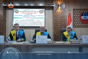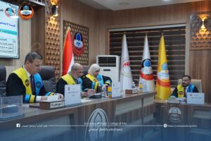 The Department of Sociology at the College of Arts held a public defense for a Higher Diploma thesis titled “The Social Institution and its Role in Limiting Intellectual Extremism: The Iraqi Media Network as a Model – A Socio-Analytical Study.” The session, held on Thursday, January 15, 2025, was attended by the Dean of the College, Professor Dr. Hatim Fahd Al-Ta’i, the Head of the Sociology Department, Dr. Firas Abbas Fadhil, and several faculty members.