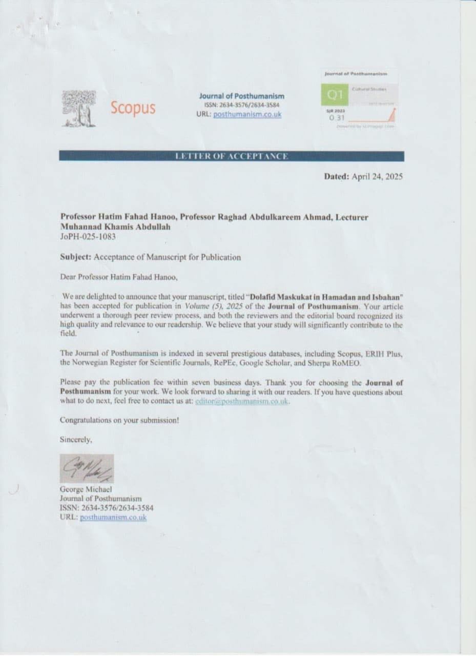Professor Dr. Mohammed Salem Saadallah, a faculty member in the Department of Arabic Language, participated in the conference titled: "Digital Prevention: Nineveh's Shield Against Cyber Extortion." The conference was organized by the People's Aid Organization [Read More]