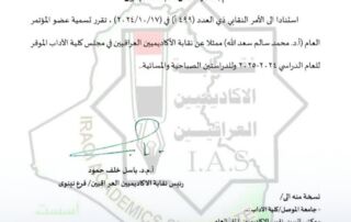 The Nineveh branch of the Iraqi Academics Syndicate has issued an administrative order appointing Professor Dr. Mohammed Salem Saadallah as the Syndicate's representative on the Council of the College of Arts. The Dean of the [Read More]