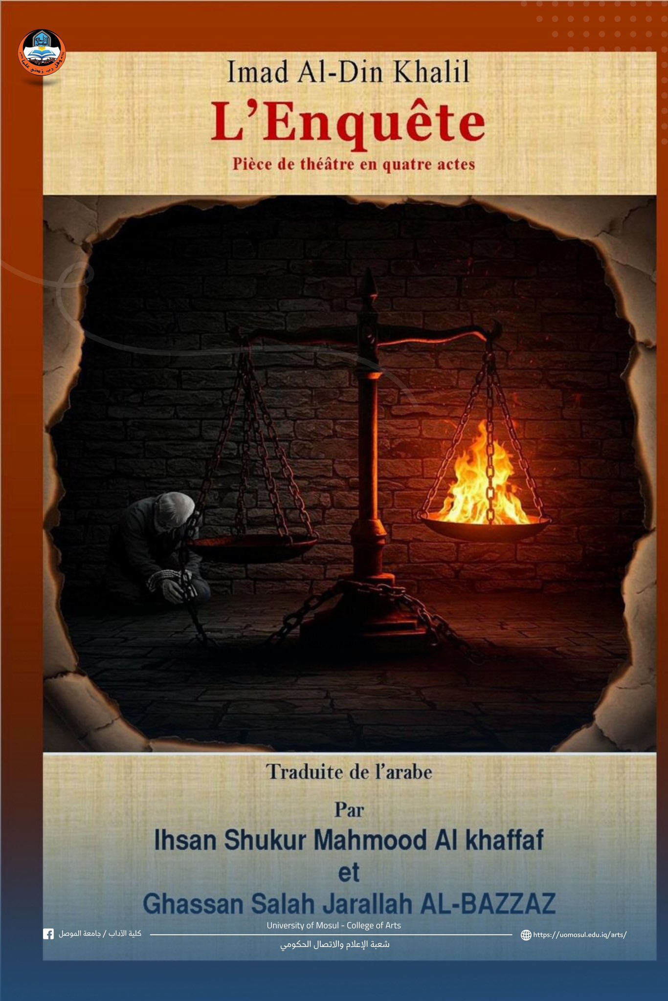 Ibn Al-Atheer Publishing House has released a book translated from Arabic into French. This translation, a play originally titled "The Investigation" (L'Enquête) by Professor Dr. Imad Al-Din Khalil, was undertaken by two faculty members from [Read More]