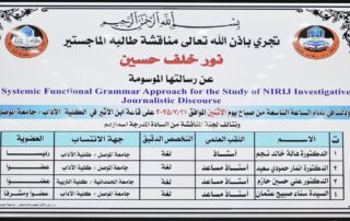 The English Department at the College of Arts discussed a master's thesis titled "A Discourse Analysis of Narrativity in Iraqi Arabic Political Interviews" on Sunday, August 17, 2025. The Dean of the College, Professor Dr. [Read More]
