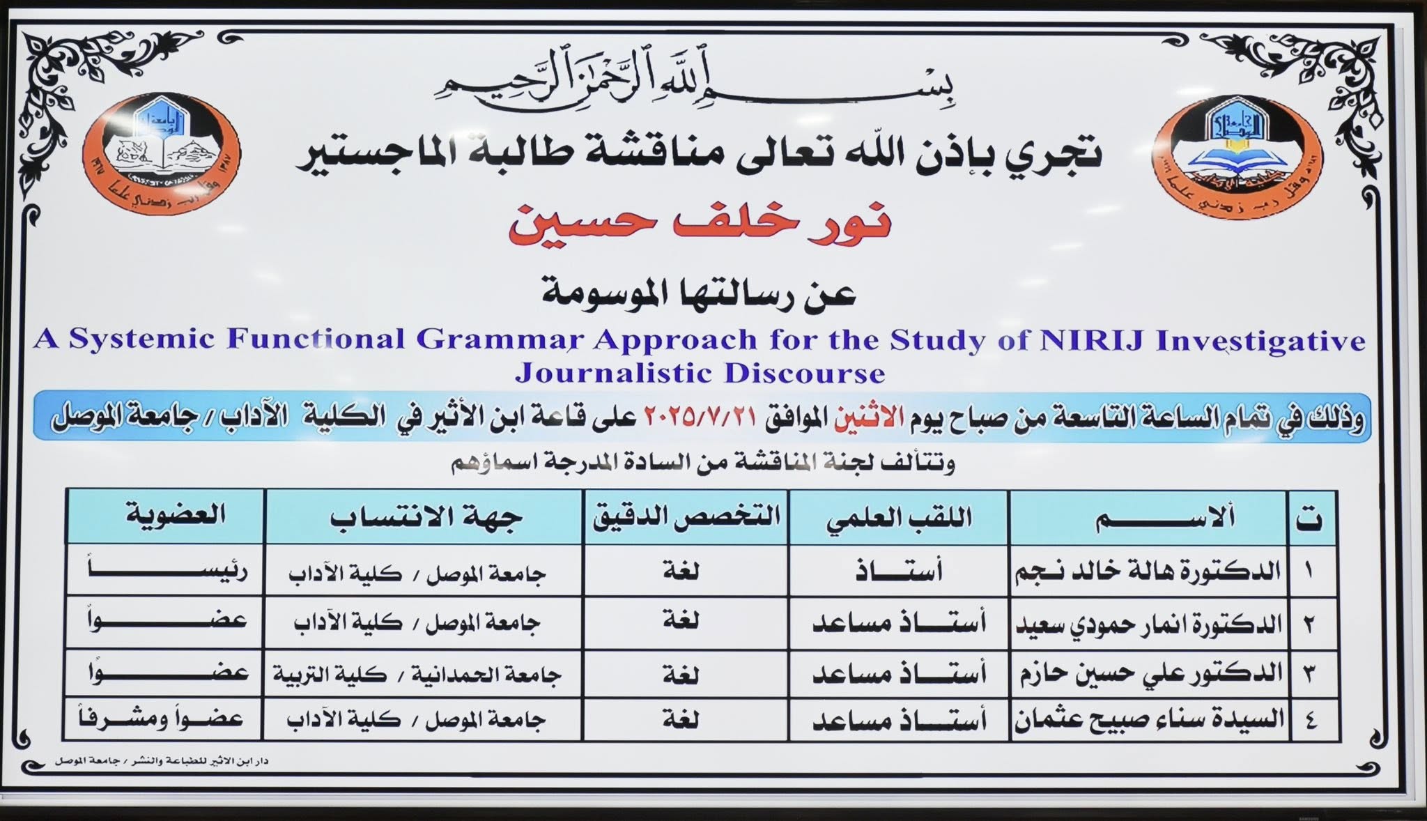 Master’s Thesis Defense: “A Systemic Functional Grammar Approach for the Study of NIRIJ Investigative Journalistic Discourse”