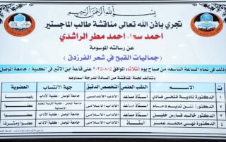 A Master’s thesis titled “The Conclusion of the Poem in the Poetry of Al-Arrajani (d. 544 AH)” successfully defended