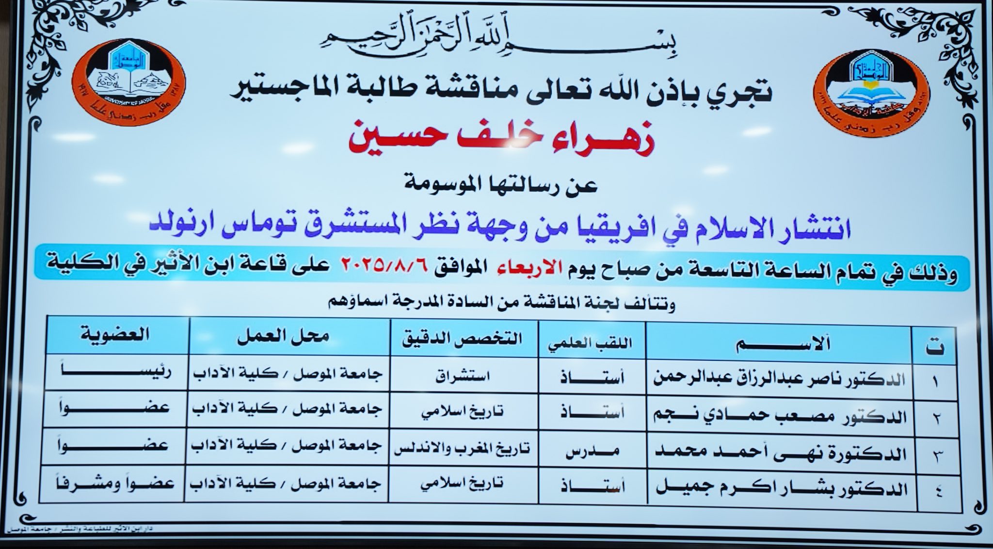 Master’s Thesis Defense on “The Banu Al-Mughirah ibn Shu’bah and Their Role in the Umayyad Era”