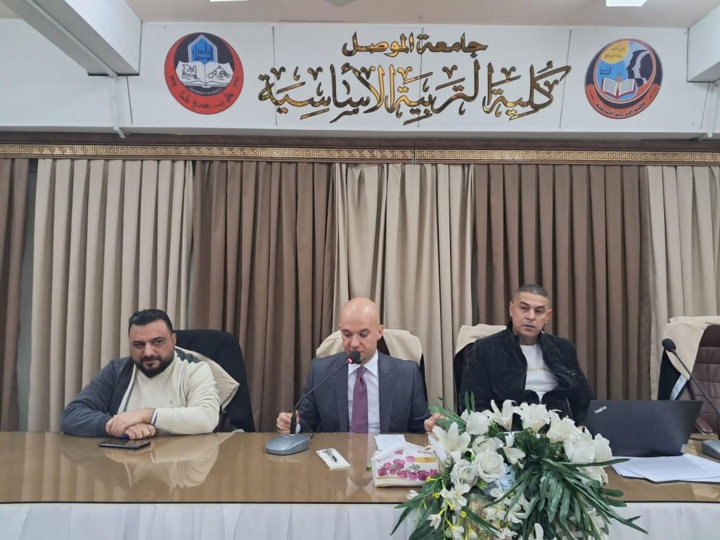Department of physical education and sport sciences college of basic education debated an Ph D treatise on Monday 27/11/2023 on umulrabeean hall dean of college his academic assistant head of department of physical education and sport sciences and some members of teaching staff attended part of the debate