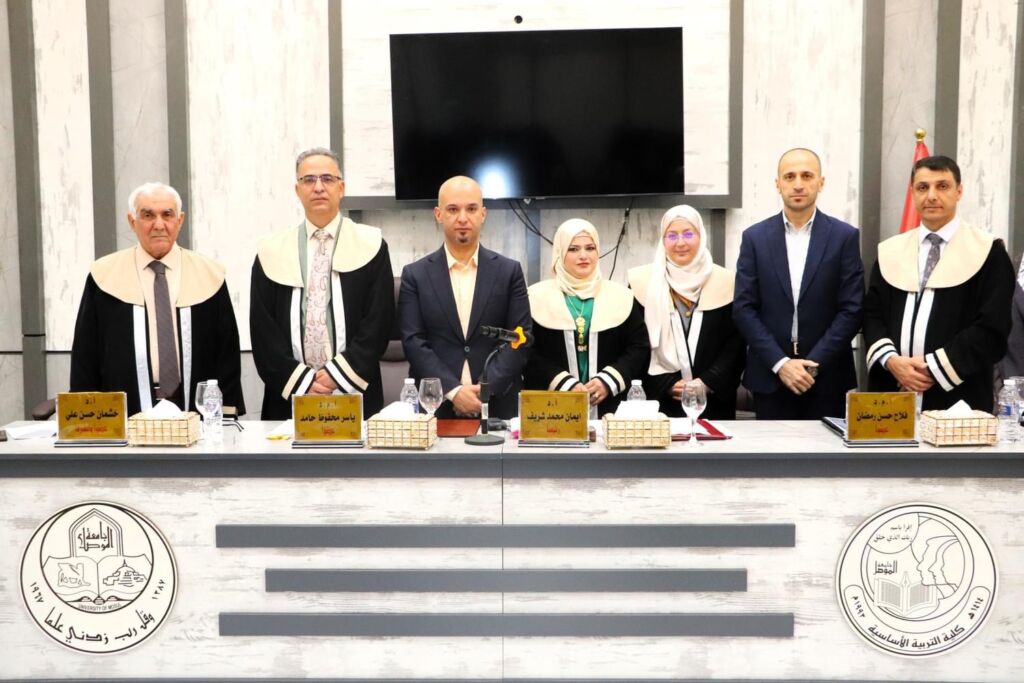 Department of kindergarten college of basic education university of Mosul debated an M A thesis on Sunday 29/9/2024 on alhadbaa hall academic assistant of president of university of Mosul dean of college and some members of teaching staff attended part of the debate