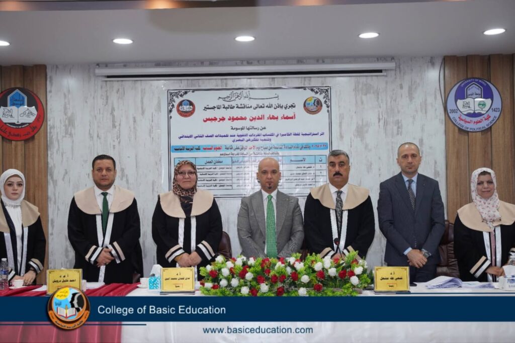 University of Mosul college of basic education department of special education debated an M A thesis on Sunday 27/7/2025 on alhadbaa hall academic and administrative assistants of dean of the college and some members of teaching staff of department attended part of the debate
