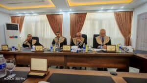 The discussion committee was chaired by Professor Dr. Ghanem Saleh Sultan from the College of Humanities, with the membership of Assistant Professor Dr. Salem Najm Abdullah, Assistant Professor Dr. Muhammad Yunus Al-Jeraisy, and Professor Dr. Jassim Muhammad Jassim as a member and supervisor