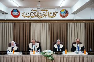The College of Basic Education at the University of Mosul discussed a master’s thesis on (Belonging among the poets of Udhrite love in the Umayyad era), on Wednesday, September 10, 2025, in the (Umm Al-Rabi’een) Hall in the college. Part of it was attended by the Assistant Dean for Scientific Affairs, Assistant Professor Dr. Ahmed Raad Ibrahim and a number of the department’s lecturers.