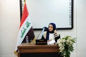 The discussion committee was chaired by Professor Dr. Fares Yassin Al-Hamdani, and the membership of Assistant Professor Dr. Hala Abdel Fattah Al-Rawi, Assistant Professor Dr. Salwa Jaber Abdel Latif, and Professor Dr. Saleh Muhammad Hassan Irdine as a member and supervisor.
