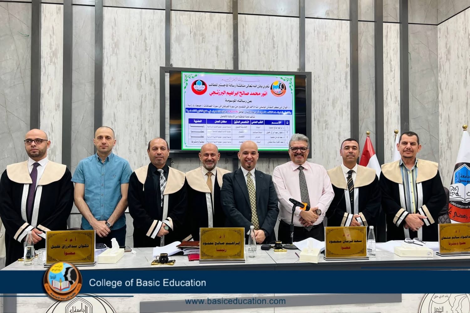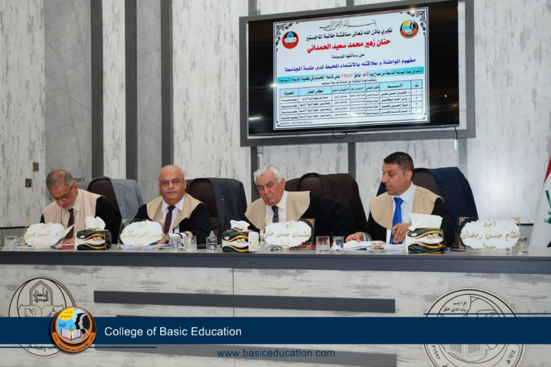 University of Mosul college of basic education department of islamic education debated an M A thesis on wednesday 30/7/2025 on umulrabeen hall