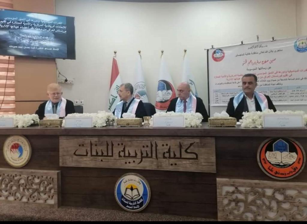 Assistant prof. Dr. Safa Al-Deen Abidallah Sulaiman participated in discussing of MSc thesis for the student Sabaa Maoulood Mohammad. The discussion has been competed on Monday 23/8/2021 on Muzahim Al-Kayat.