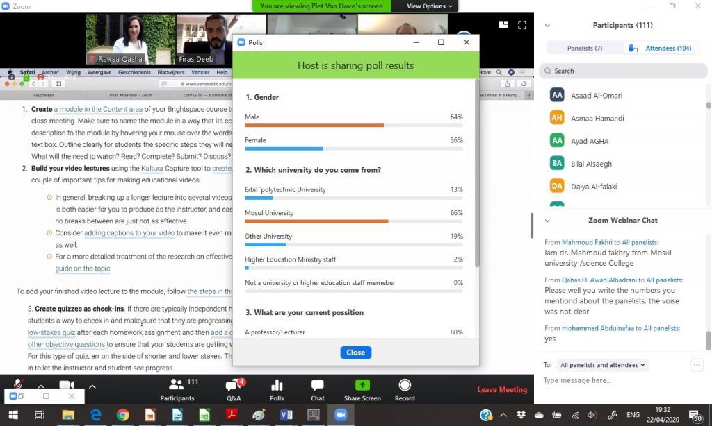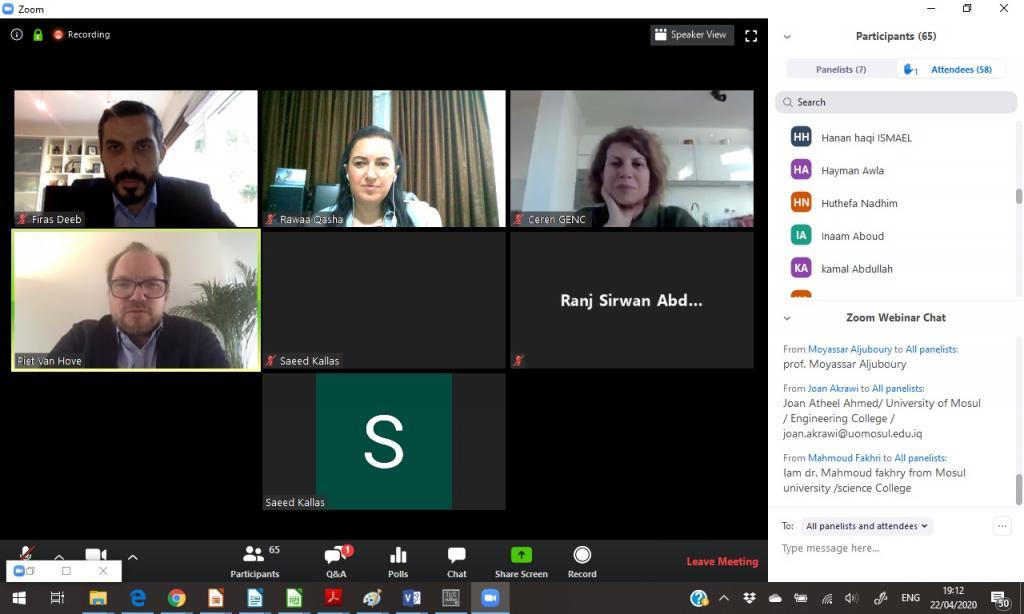 Department of Scholarships and Cultural Relations of University of Mosul, in cooperation with Netherlands SPARK Foundation, organize an international virtual lecture titled ‘Universities’ Responses to Covid-19 Pandemic.’ Professors of University of Mosul, Erbil Technical University, Belgian Antwerp University, and other Iraqi universities, participated in the lecture, which featured a distinguished lecturer, Mr. Piet van Hove of Antwerp University. The lecturer discussed the strategies taken by the world universities in the field of e-learning awhile Covid-19 Pandemic, the most prominent challenges they meet, and the best ways used to attract and encourage the students to follow up the process.