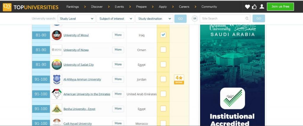 University Of Mosul Within QS Classification