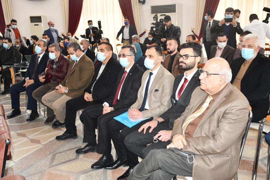The Statistics Advisory Bureau of University of Mosul, in cooperation with the UNESCO, announced the results of the preparatory field survey for the reconstruction of the Grand Nori Mosque and the Hadba’a Minaret, in a celebration held for the occasion.The event, which was attended by Rector Alahmady and his Assistant, representatives of the UNESCO in Iraq, and other officials and social figures of the city, included briefings by Rector Assistant, Prof. Dr. Munir Salim Taha, UNESCO representative in Iraq (online), and by Head of the Bureau, Dr. Bashar Abdulaziz Al-Talib, in which he presented a video show of the procedure of the survey.