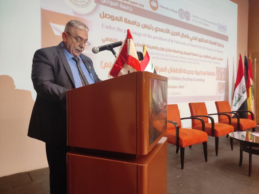 ‘A New Creative Culture for Childern of Iraq: Teaching and Learning’ is the title of the international conference organized jointly by University of Mosul and Martin Luther University, in cooperation with DAAD, and held at Beirut, Lebanon, on October 1-4, 2021.The conference, which aims at facing the new challenges in teaching and learning in the century with special interest on childern and how to teach and to protect them, featured keynote speakers like Rector Assistant, Prof. Dr. Munir Salim Taha, Prof. Rav Brandt of Potsdam University, Germany, Prof. Dr. Ekin Burak of Exeter University, Istanbul, Turkey.