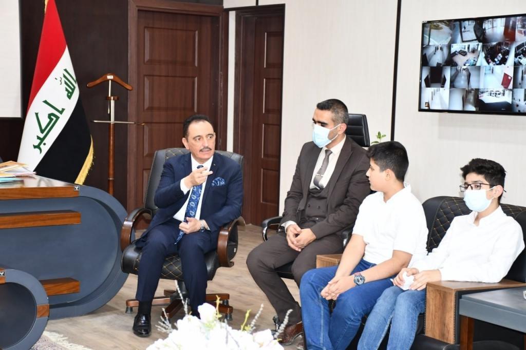 On October 7th, Rector Alahmady received a group of students and teachers of the Got-Talent High School, Mosul. He listened to them, appreciated their ideas and aspirations, and emphasized the University’s readiness to help them fulfill their prospective projects through the laboratories, facilities and assets it has. The group toured in the University and visited the Computer Center, where they were briefed on the nature and mechanisms of the works of the Center.
