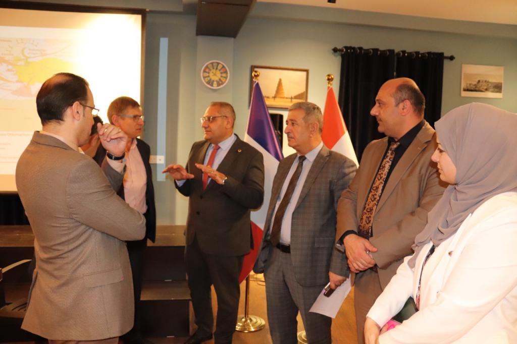 Department of Scholarships and Cultural Relations/ the Francophony Corner, in cooperation with College of Political Sciences organized a seminar featuring Prof. Fabrese Balanche of Université Lumière Lyon 2, a speaker, in the hall of the ICFI, Mosul on October 7th, 2021.The seminar, titled (Iraq & The Pivot of Crises), took on the political regime governing Iraq, the local, regional and international factors affecting its stability, the conveniency of reconstructing war-destroyed areas, and the possibility of Iraq’s participation in the big International economic and strategic projects like the land and marine Silk Road.