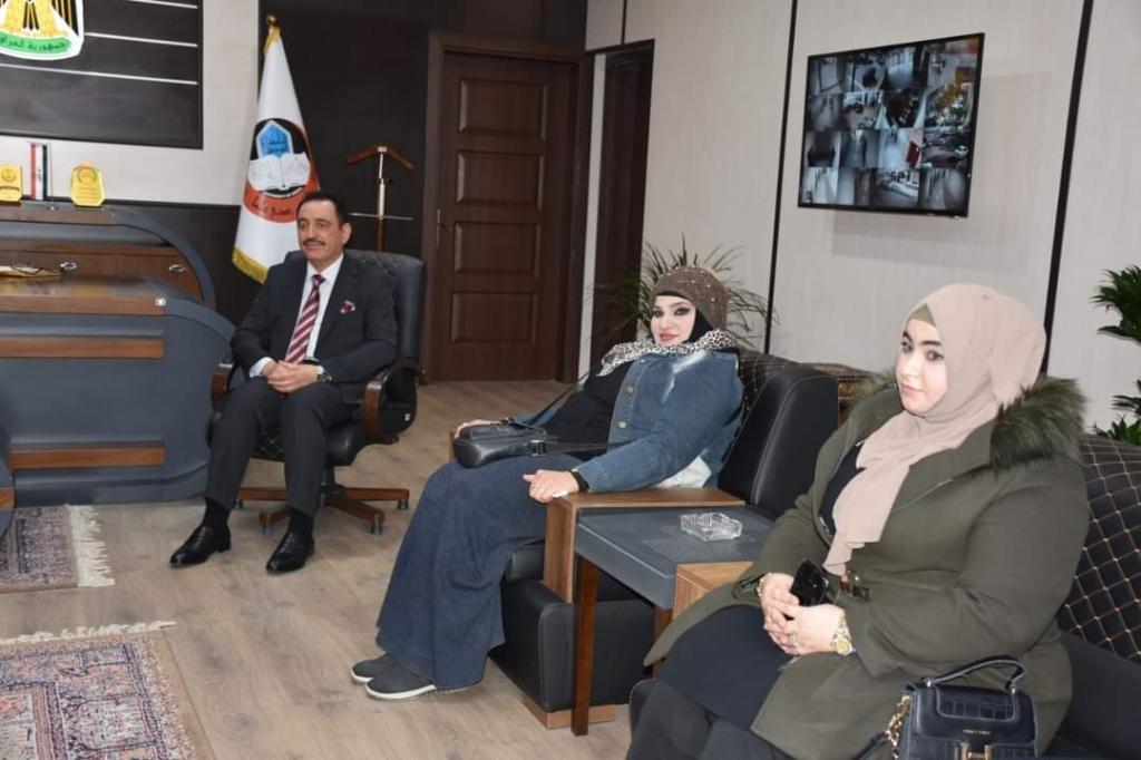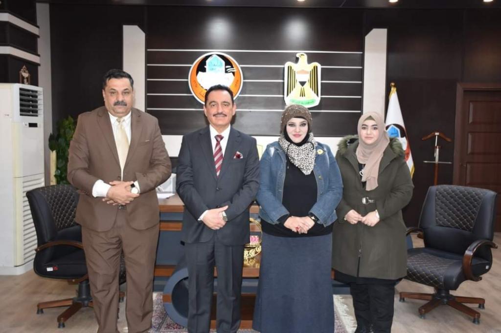 Rector Kossay Alahmady received the got talent Bushra Talal, a student of College of Fine Arts, after she achieved the first place in the individual sketch painting competition organized by Ministry of Higher Education and Scientific Research at University of Basrah, in which 33 Iraqi public and private universities participated. Rector Alahmady honoured the student and voiced his incessant support to all students in general, and the got talent in particular.