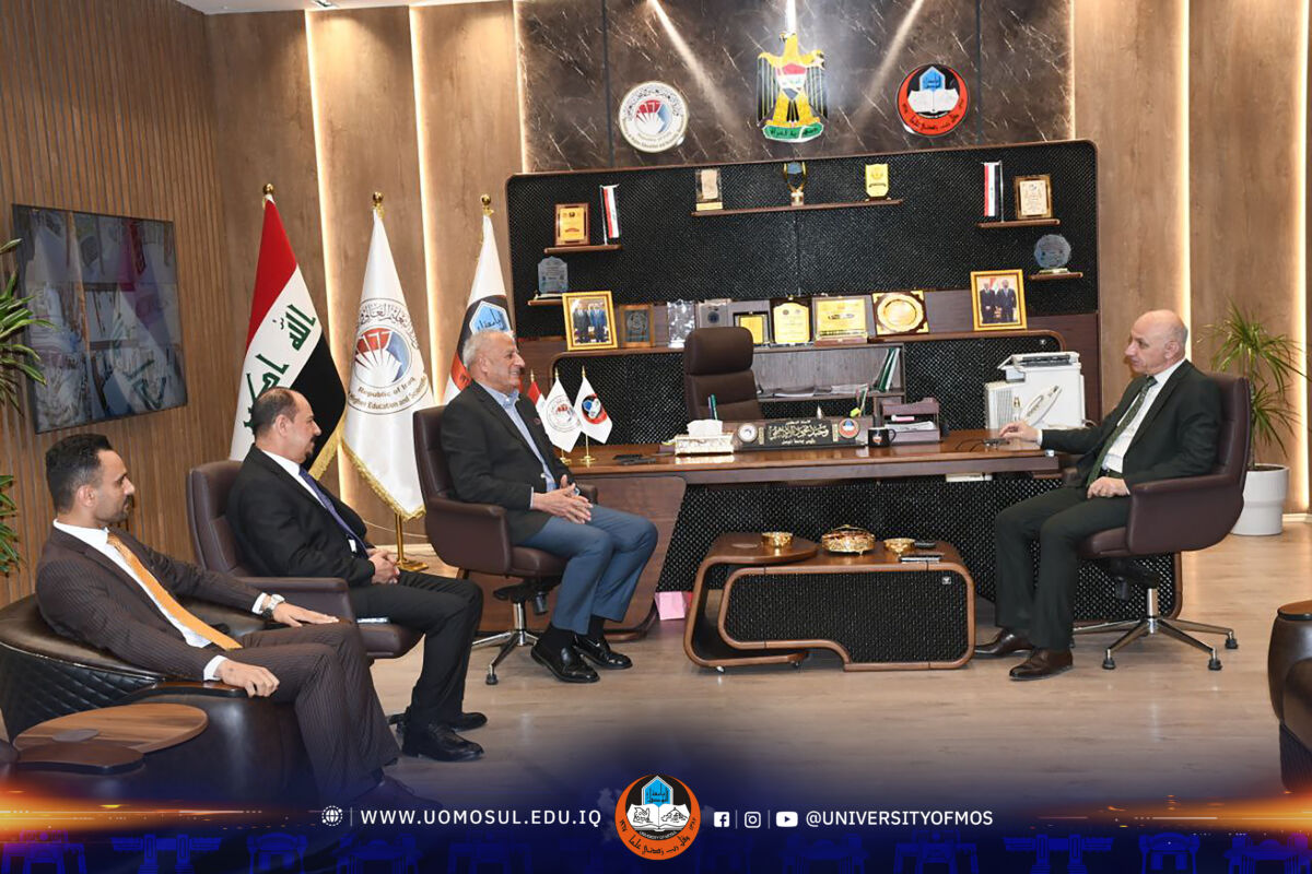 Prof. Dr. Muzahim Al-Khayat, Chairman of the Parliamentary Higher Education Committee, visited the University of Mosul, where he congratulated Prof. Dr. Wahid Mahmoud Al-Ibrahimi, President of the University, on the occasion of Eid Al-Fitr.