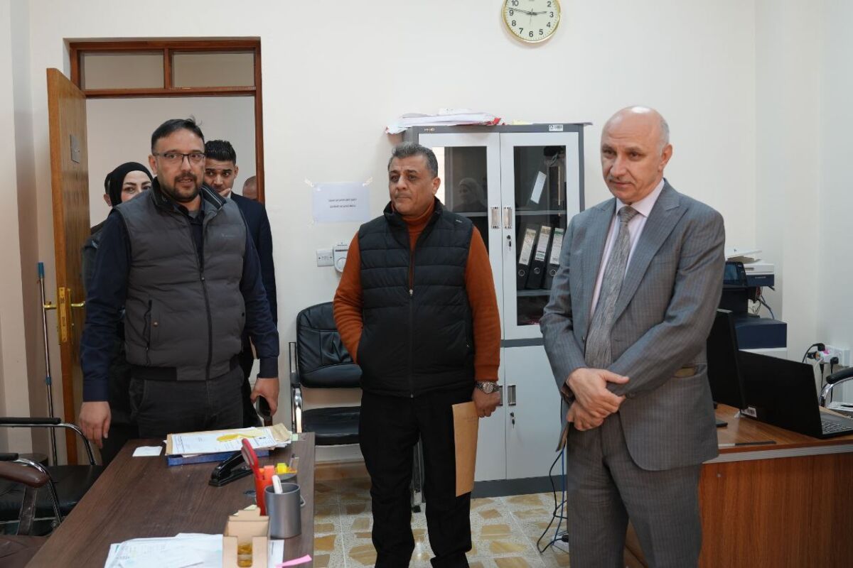 On Tuesday, December 30, 2025, Dr. Wahid Mahmoud Al-Ibrahimi, President of the University of Mosul, conducted an inspection tour of the sections and units of the Administrative and Financial Affairs Department at the university’s presidency. This visit was part of his field follow-up on the administrative work process and to assess the performance mechanisms and actual needs of the staff, accompanied by Dr. Basel Khalaf Hamoud, Head of the Academics Syndicate in Nineveh.