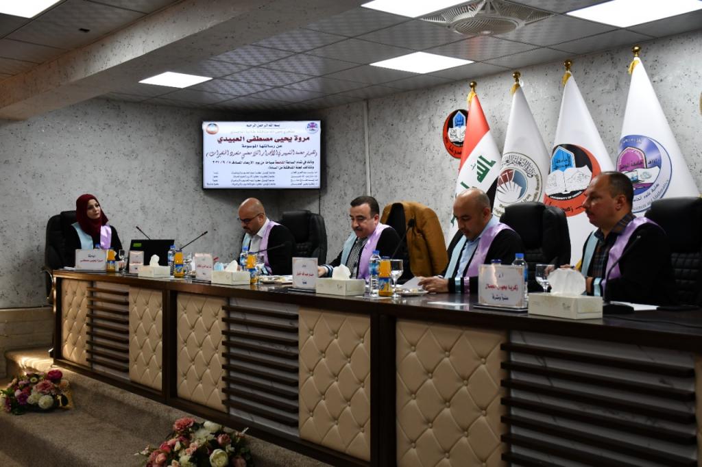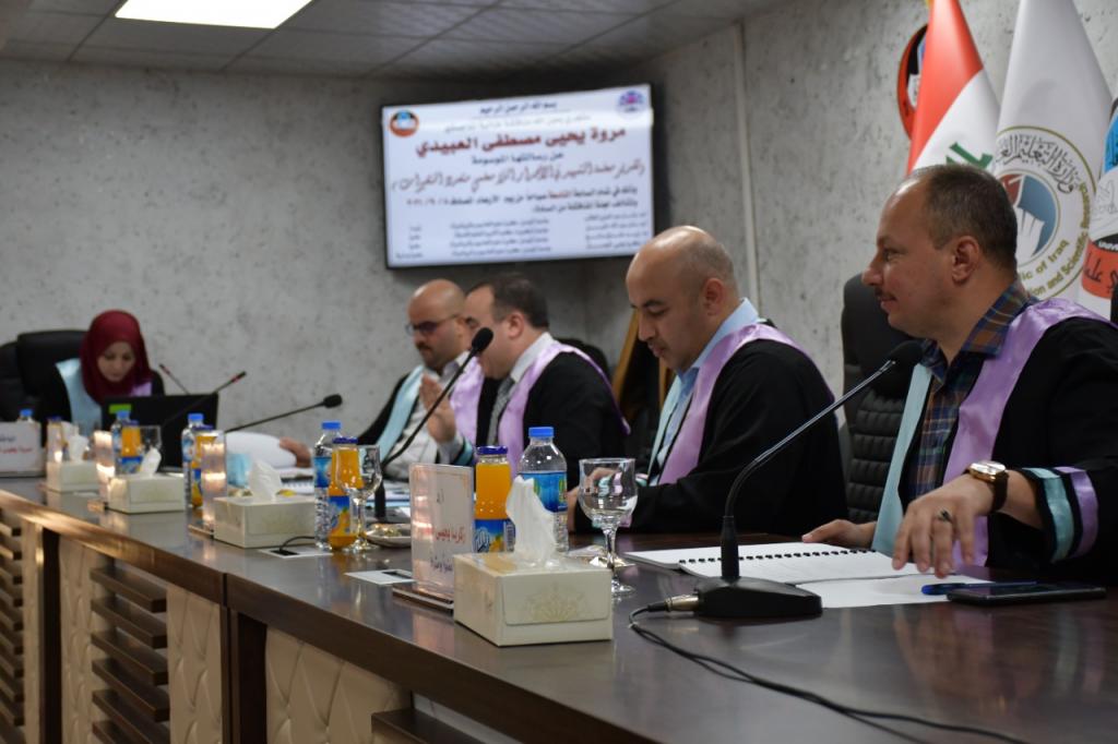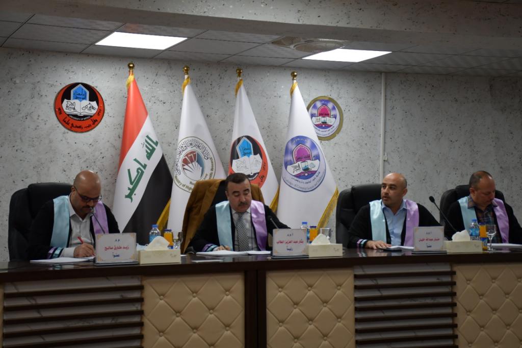 The discussion committee was chaired by Assistant Professor Dr. Bashar Abdel Aziz Al-Talib and the membership of Assistant Professor Dr. Munther Abdullah Khalil from Tikrit University and Dr. Zaid Tariq Saleh, under the supervision and membership of Professor Dr. Zakaria Yahya Al-Jammal.