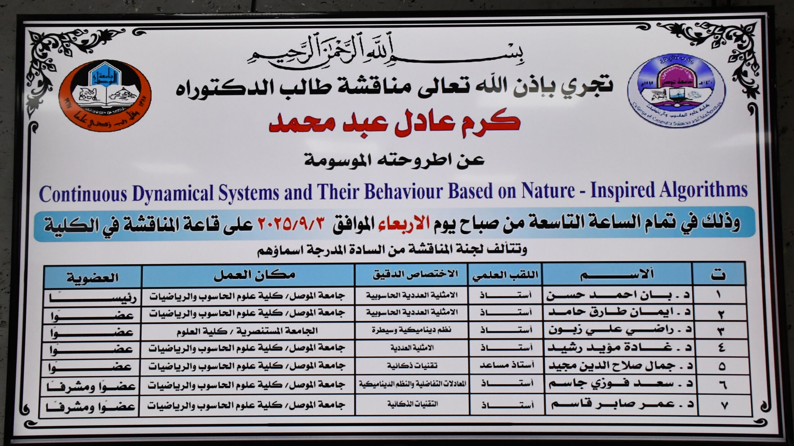 It was discussed in the discussion room at the Faculty of Computer Science and Mathematics at the University of Mosul on Thursday, 4 -8-2025.
