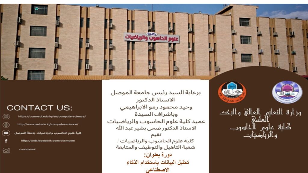 Under the patronage and supervision of the Dean of the College of Computer Science and Mathematics, Professor Dr. Duha Bashir Abdullah, and as part of the college’s series of scientific activities, the college held a series of continuing education courses for the academic year 2025-2026, including a continuing education course “Artificial Intelligence and Cyber Security Technology” starting Monday 10-6-2025, delivered by Asst. Milad Jader Saeed and Asst. Dr. Amerah Istiqlal Badran