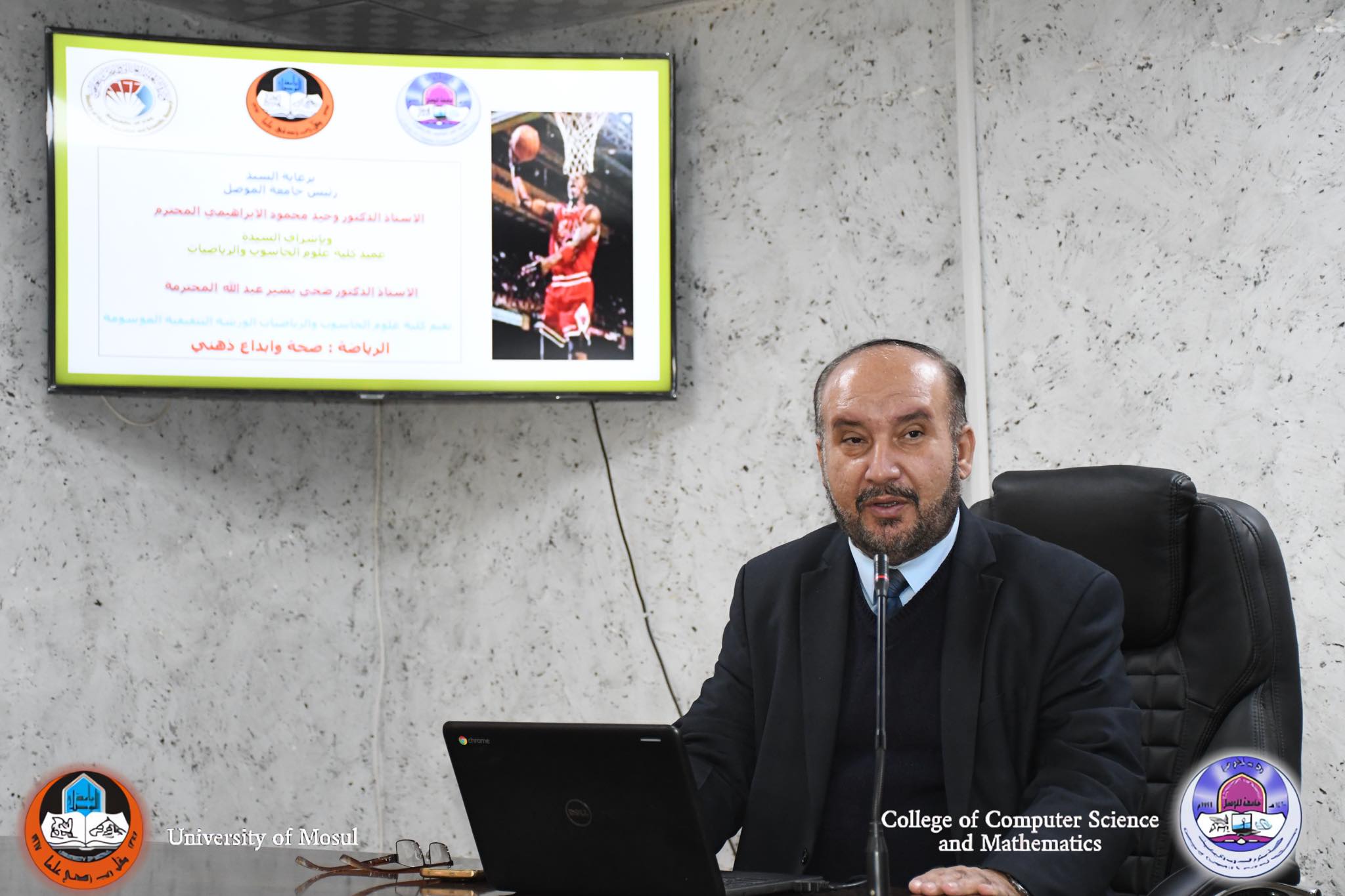 Under the patronage of the Dean of the College of Computer Science and Mathematics, Professor Dr. Duha Bashir Abdullah Al-Bazzaz, the College’s University Psychological Counseling Unit organized an awareness workshop entitled “Sports: Health and Mental Creativity” on Wednesday, December 24, 2025. The workshop, presented by Dr. Muhammad Qasim Yahya, was part of the unit’s activities aimed at promoting health and mental well-being among students.