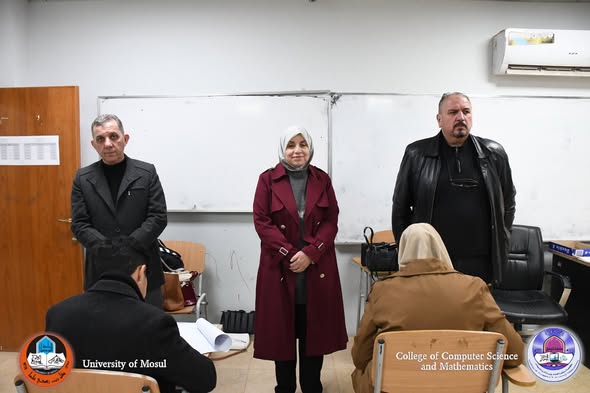 Coinciding with the start of the first semester final exams for undergraduate students, Professor Dr. Duha Bashir Abdullah Al-Bazzaz, Dean of the College of Computer Science and Mathematics at the University of Mosul, conducted an inspection tour to monitor the examination process in the college’s various departments on Sunday, December 28, 2025.