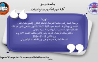 The College of Computer Science and Mathematics at the University of Mosul held a course entitled "The Role of the Integrity Commission in Reducing the Phenomenon of Corruption" on Tuesday, November 5, 2024. Presented by [Read More]