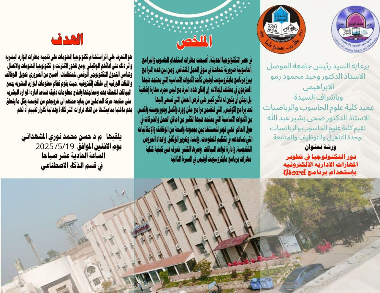 Under the patronage of the esteemed President of the University of Mosul, Professor Wahid Mahmoud Al-Ibrahimi, and under the supervision of the esteemed Dean of the College of Computer Science and Mathematics, Professor Duha Bashir [Read More]