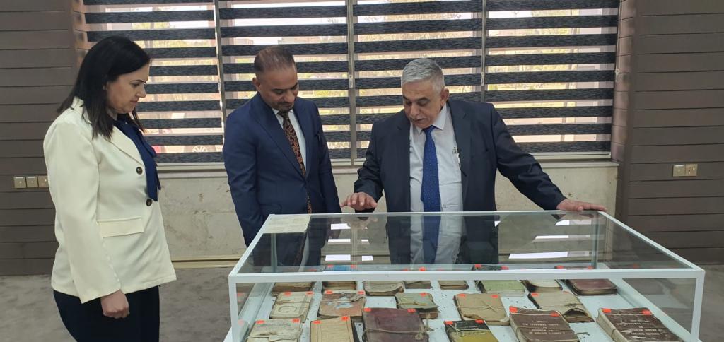 On the sideline of the Leadership Youth Forum that was held in the morning of Wednesday, September 28, 2022, University of Mosul was visited by Dr. Hazem Jerry Al-Shamry, the Executive Vice-President of the Department of Scholarships and Cultural Relations in the Ministry of Higher Education and Scientific Research and met with Professor Dr. Qusay Kamal Al-Din Al-Ahmad, President of Mosul University. Accompanied by the University President’s Assistant for Scientific Affairs, Dr. Munir Salem Al-Badrany, and the Assistant Professor, Director of the Department of Scholarship and Cultural Relations at the Presidency of the University of Mosul, Dr. Rawaa Boutrs Boules, Dr. Hazem Jerry Al-Shamry inspected the Central Library of Mosul University and the University’s Great Theater Hall. During the meeting, several duties of the Department of Scholarships and Cultural Relations at the University of Mosul were discussed.