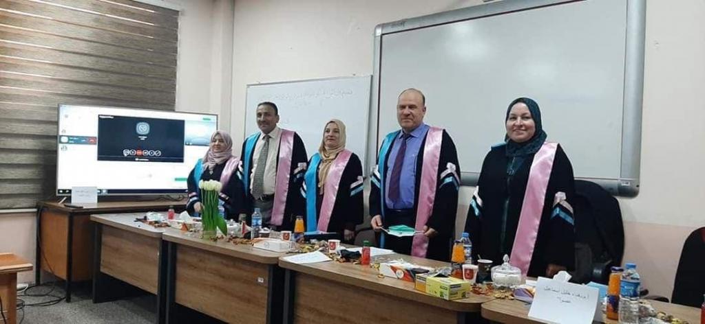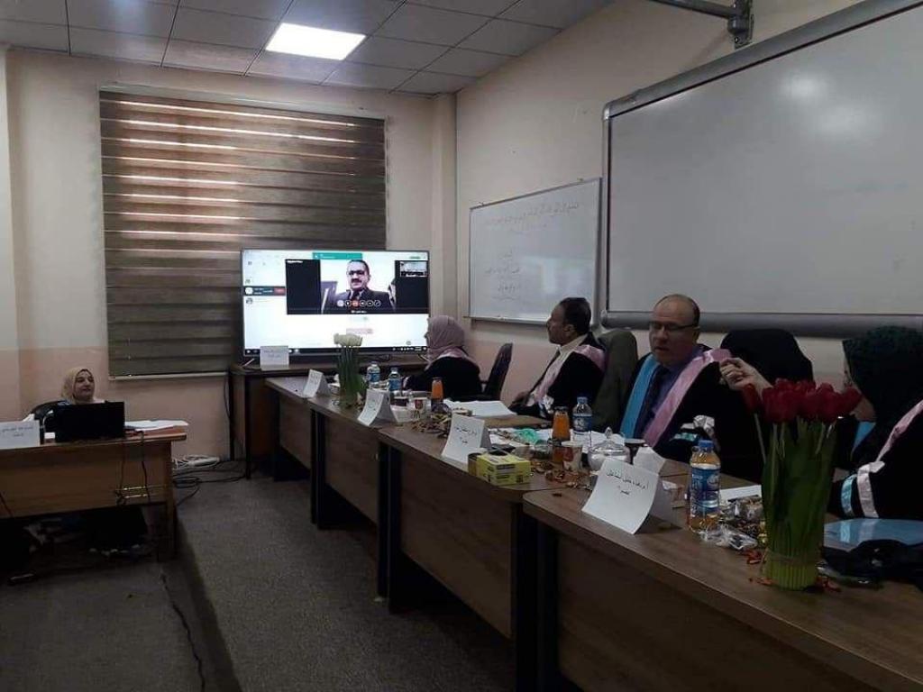 In the presence of Mr. Assistant President of Mosul University for Scientific Affairs, Professor Dr. Munir Taha, and on Hall of A. Dr.. Amer Taqah, on April 16 Discussion of a master’s thesis for the student, Ibtisam Taha Al-Jeraisy, in the Oral and Maxillofacial Surgery. The subject of thesis was assessing the general and local effect of coenzyme quotein help in wound healing in mice. In addition to the Evaluation of systemic and objective effects of coenzyme Q10 on wound healing in mice.The discussion committee consisted of the following: