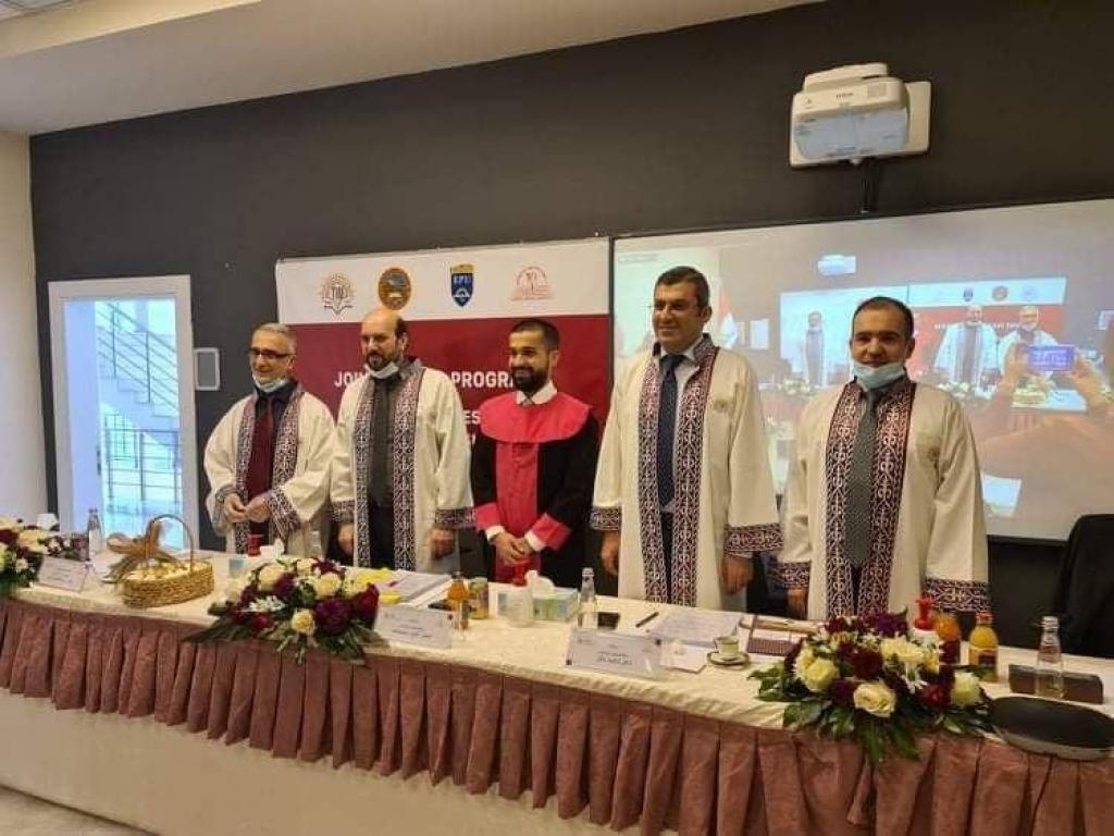 Within the framework of cooperation between the University of Mosul with the private universities, Asst. Prof. Dr. Imad Farhan Ali Al-Khalidi from the College of Dentistry / University of Mosul participated in the discussion of the master’s thesis of the student Jenner Subhi – from the University of Tishk / College of Dentistry / Conservative Dentistry Department etitled: