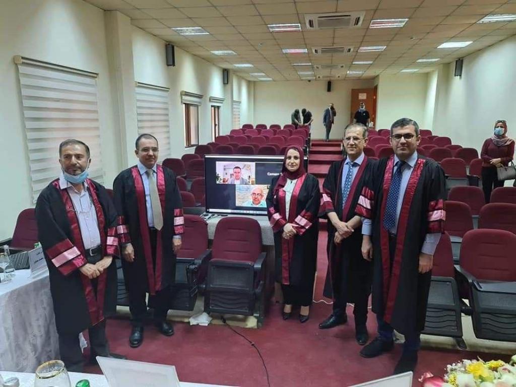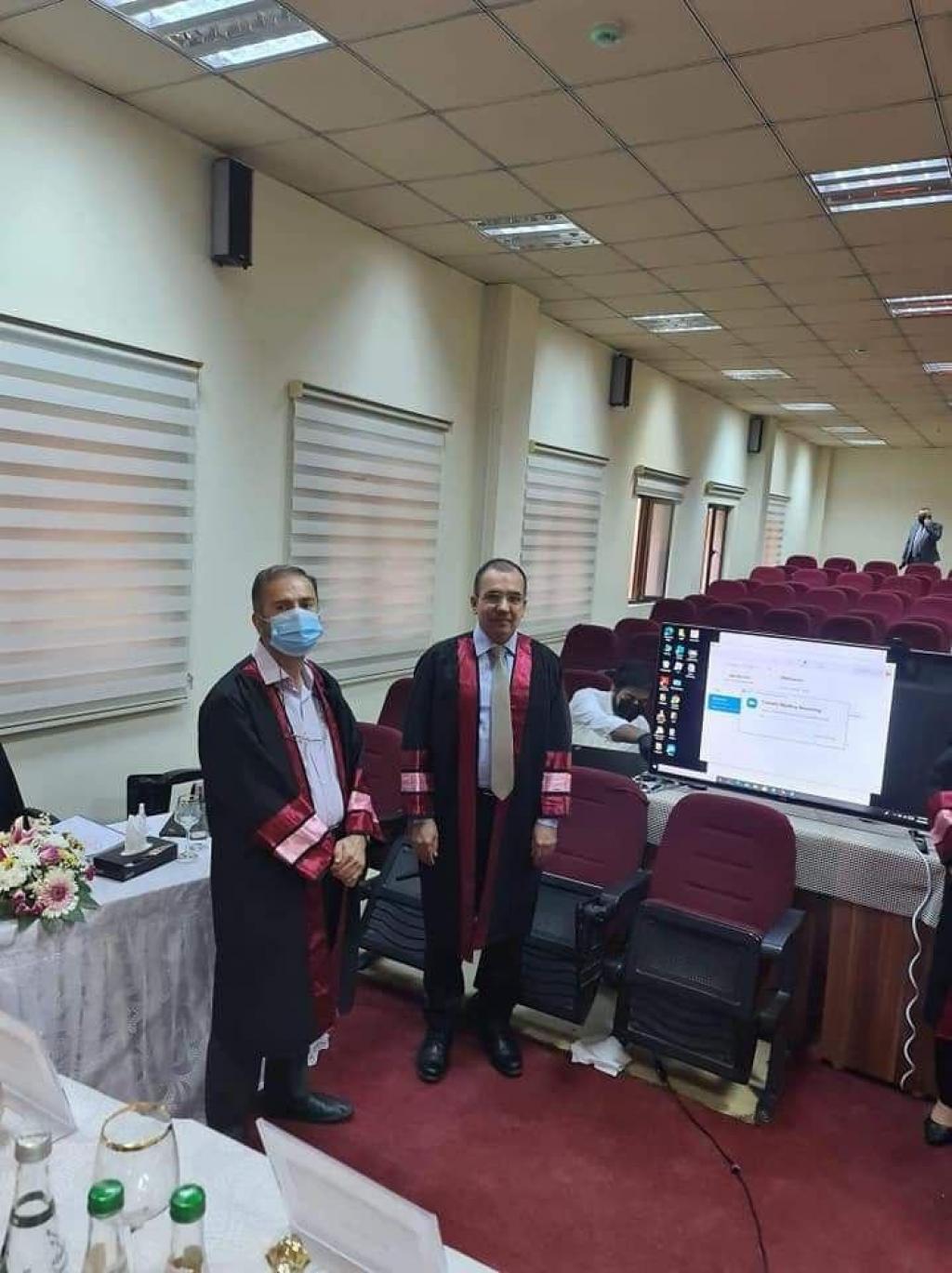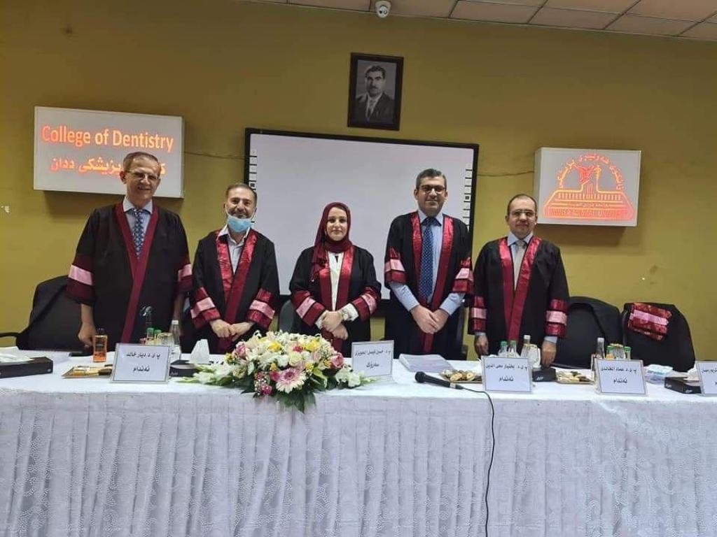 Assistant Professor Dr. Imad Farhan Ali Al-Khaldi, Dept. of Conservative Dentistry participated, on Thursday, 3 September 2020, in the discussion of the doctoral thesis of student Sakkar Muhammad, at the Faculty of Dentistry, Hawler University of Medical Sciences. The thesis was accepted after extensive discussion and modifications.