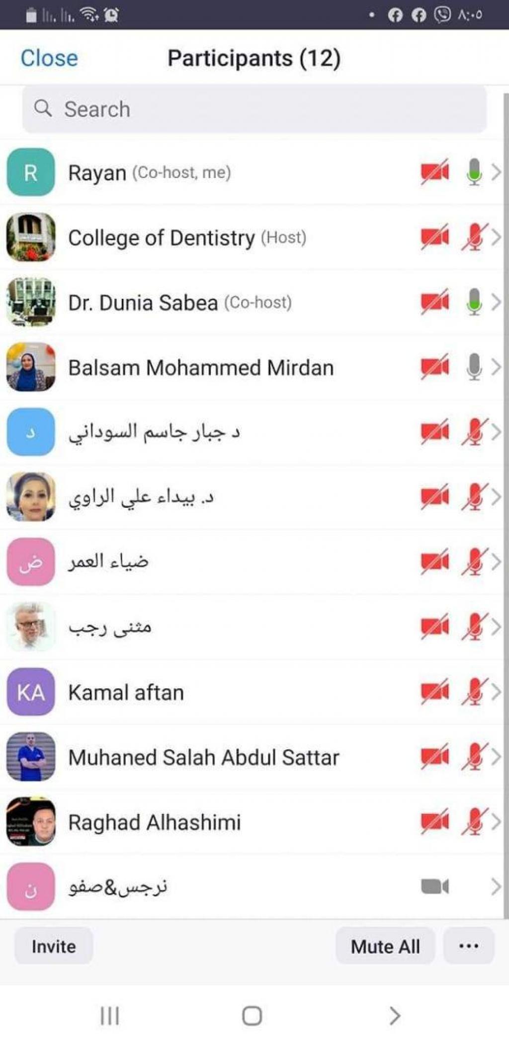 The Dean of the College of Dentistry / University of Mosul, Assistant Professor Dr. Rayan Salim Hamed, attended the meeting (online) of the Council of Deans of Colleges of Dentistry in Iraq, which was held in its third session. The deans discussed many topics, the most important of which is the follow-up to the completion of the duties of the previous sessions, the certificate equivalency law, the setting up of curriculum update committees, the faculties ’need for instructors, and other topics. The committee was chaired by Assist.Prof. Dr. Donia Wadih Sabaa, and was attended by all deans of government colleges.