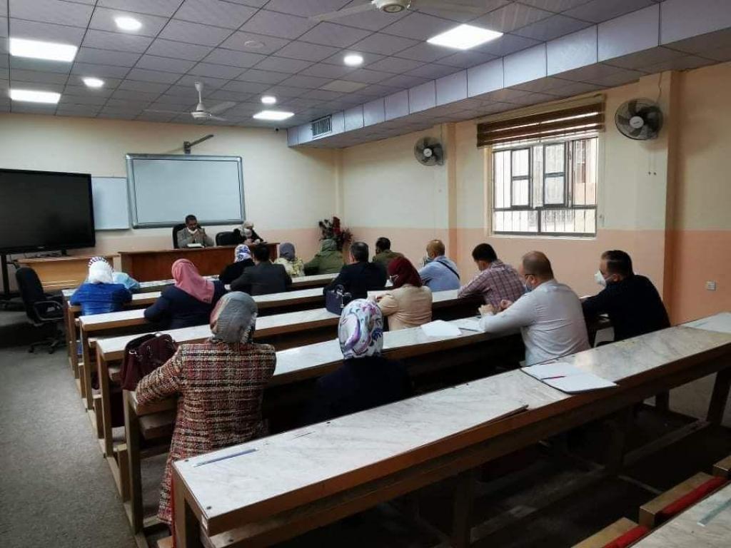 During the meeting, the methods that the committee will follow in lectures and scientific content to be presented for the academic year 2020-2021 were discussed. It is worthy to note that the teaching system for the upcoming year will be an integrated education system in which there will be a blending between theoretical lectures, which will be electronic, and practical, in which students will attend while adhering to the means of prevention. The meeting also discussed the difficulties that accompanied the educational process during the past year due to COVID -19 lock down and to come up with teaching aids in order to ensure the smoothness and quality of the teaching process.