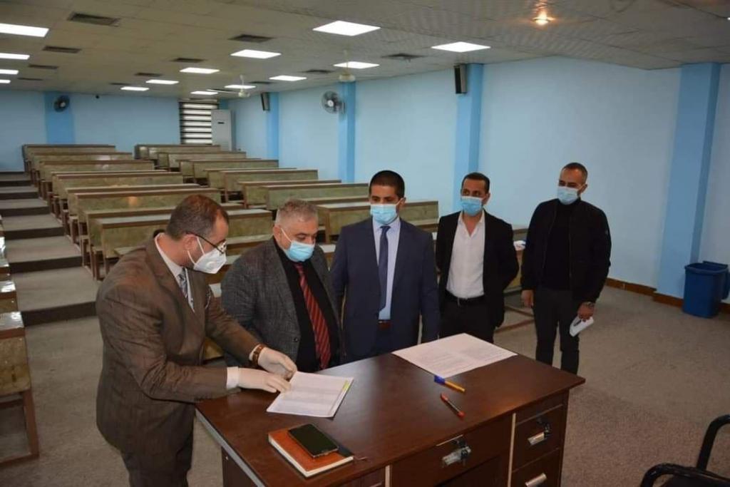 On Sunday, 20/12/2020, an inspection visit took place by the President of the University of Mosul, Prof. Dr. Qusay Al-Ahmadi, and the Assistant for Scientific Affairs, Professor Dr. Munir Taha Salem, to the College of Dentistry to see the progress of the registration process for students admitted to the first stage. They were received by the Dean of the College of Dentistry, Assistant Professor Dr. Rayan Salem, the Associate Dean and the College’s Media manager, and the Head of the Student Reception Committee.