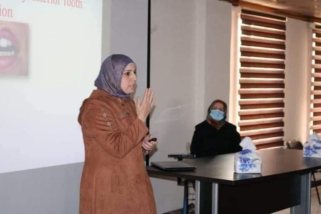 The lecture was presented by Dr. Reem Nateeq Al-Rahim, a lecturer in the Department of Prosthodontics, University of Mosul.