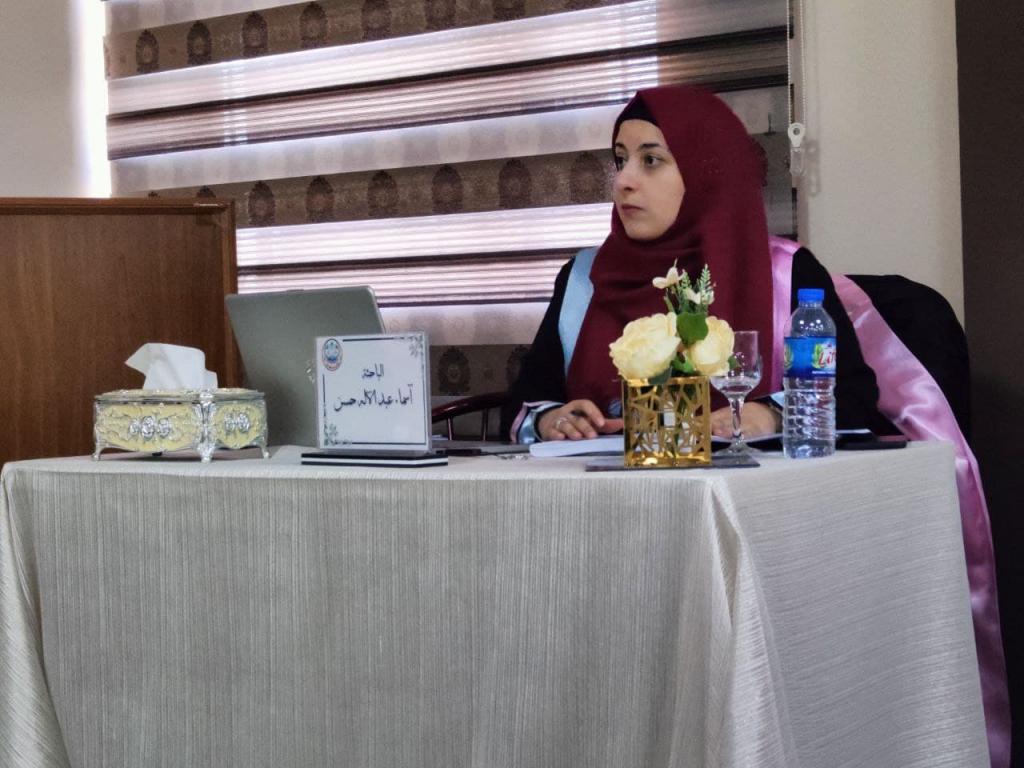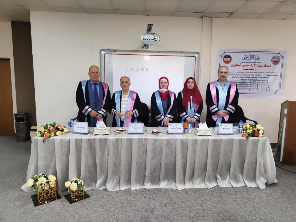 The discussion committee was chaired by the membership Dr. Sultan Manwa / Al-Hadba University College / member, and Dr. Nour Abdullah Suleiman / member, and Dr. Omar Walid Majed / member and supervisor.