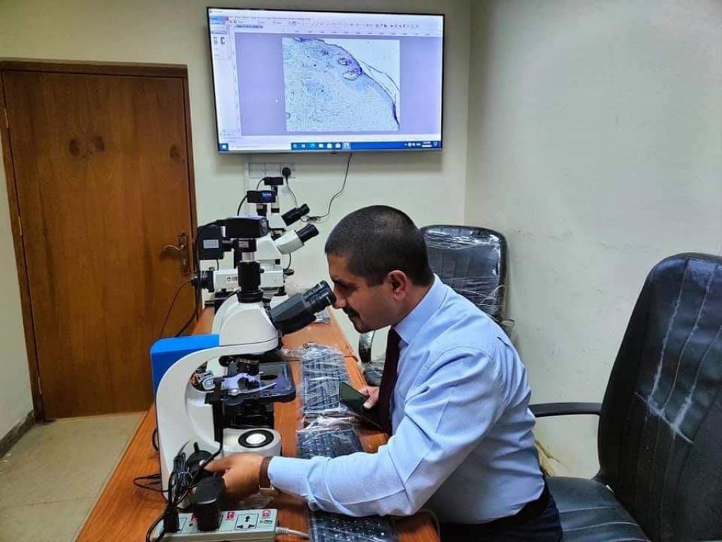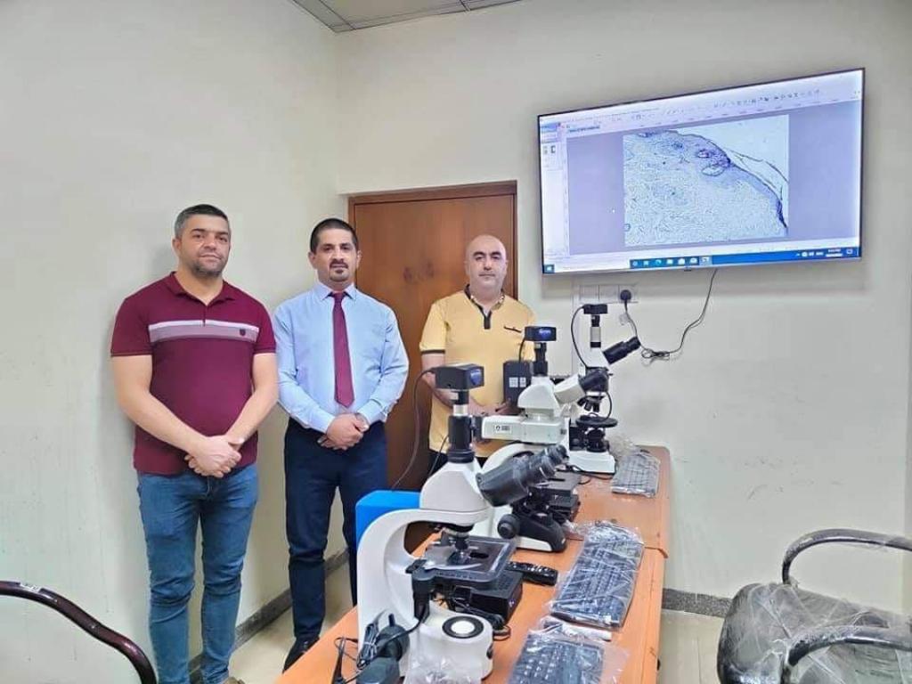 The qualification included equipping the lab with modern types of microscopes, the first of which is a polarized examination microscope for metal samples and solid objects, and the second is a fluorescent optical examination microscope for research examinations, tumor parameters, and immunohistochemical examinations, in addition to the usual optical microscope for histological examinations, all supported by high-quality 4k cameras for exposure to Screen for educational, research and medical purposes.