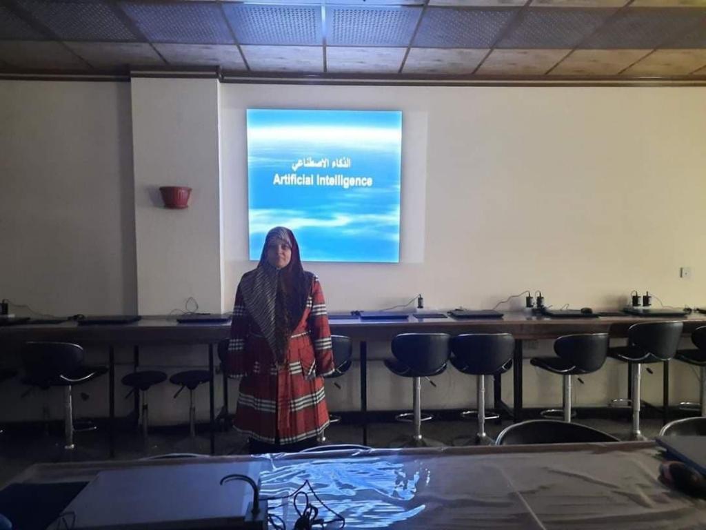 As part of the continuing education activities for the Basic Sciences Department, Assistant Professor Shahla Hazem Kharoufa gave a seminar entitled “Artificial Intelligence”, during which she discussed the most prominent basics of artificial intelligence, its current developments and its applications in the health and dental fields, in the computer lab.