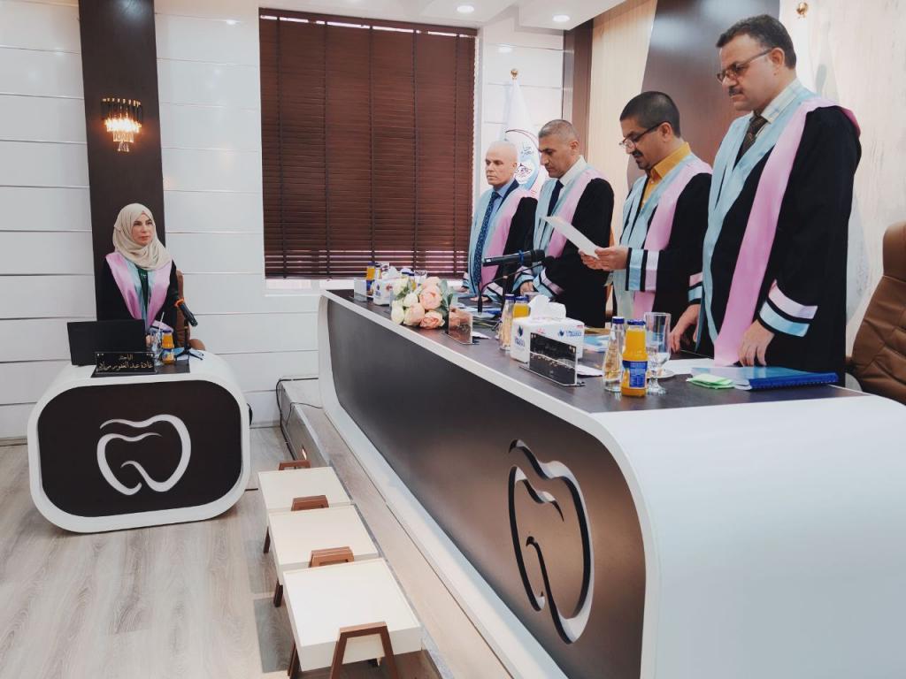 College of Dentistry discussed M.Sc. Thesis entitled “Effect of Leukocyte and Platelet Rich Fibrin (L-PRF) on Saliva Level of IL-6 and Post-Operative Sequelae after Surgical Removal of Impacted Lower Third Molar ” on 15 May 2022 forwarded by Ghada Abd Al-Ghafoor Murad. The study evaluated the effect of (L-PRF) on the level of IL-6 in saliva, swelling and trismus after surgical removal of impacted lower third molar. It was proved by the study that (L-PRF) could decrease the swelling, trismus and saliva level of IL-6 but without a statistical significant difference between the groups.