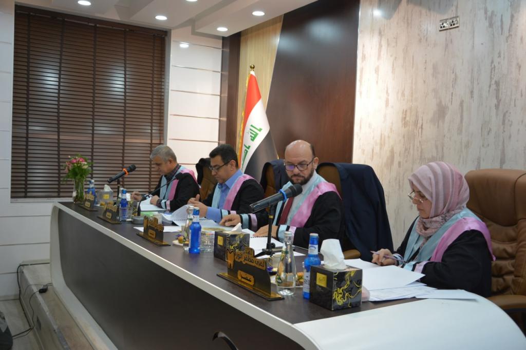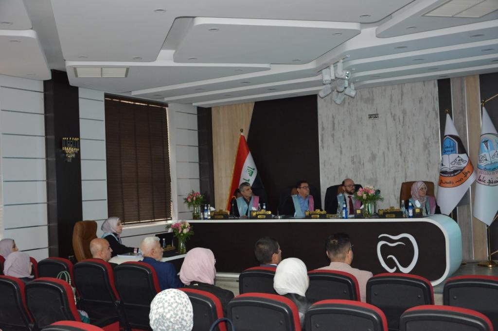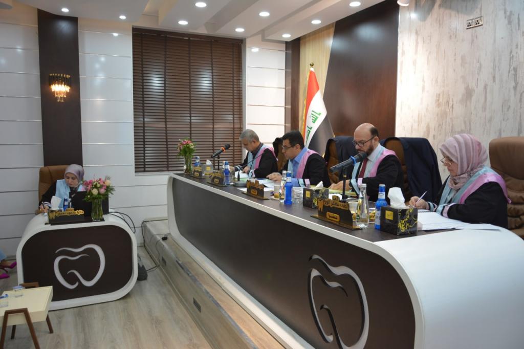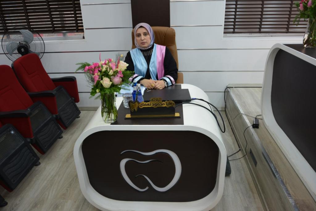College of Dentistry discussed M.Sc. Thesis entitled ” The Effect of Adding Titanium Oxide Nanoparticles to Poly Methyl Methacrylate Denture Base Material ” on 16 November 2022 forwarded by Dalya Mahmood Noaman. The study evaluated the effect of adding titanium oxide nanoparticles to Poly Methyl Methacrylate Denture Base Material with different concentrations on mechanical and physical characteristics, including transverse strength, thermal conductivity, compressive strength, indentation hardness, surface roughness and color change of heat cured denture base resin. It was proved by the study that adding titanium oxide nanoparticle to poly methyl methacrylate denture base material had acceptable effect on the produced nano composite’s color in addition to improving transverse strength, thermal conductivity, compressive strength and indentation hardnessmof the produced nano composite .