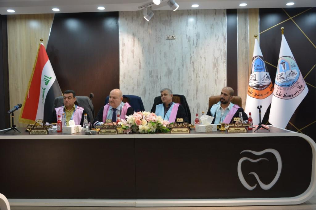 College of Dentistry discussed M.Sc. Thesis entitled ” Dimensional Accuracy and Color Stability of Nanoparticles Reinforced Denture Base Materials ” on 2 March 2023 forwarded by Ghadaq Muyser Younus. The study evaluated the dimensional accuracy and translucency of denture base materials after reinforcing them with zirconium oxide and silicon oxide nanoparticles and immersion in beverages solutions. It was proved by the study that there was a significant increase in dimensional stability of denture base material reinforced with nanoparticles (1% silicon oxide and 35 zirconium oxide). The color stability was also improved by adding 1% zirconium oxide and 1% silicon oxide to denture base materials.