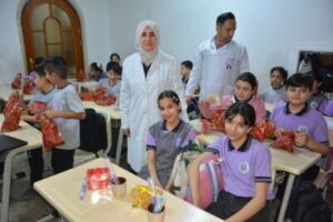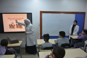 As part of the community service activities conducted by the Oral Diagnosis Department at the College of Dentistry / University of Mosul, the department’s staff carried out a field visit to Al-Mubdiun Primary School. The visit aimed to raise health awareness among this segment of the community and to train students on methods of preventing oral and dental diseases.