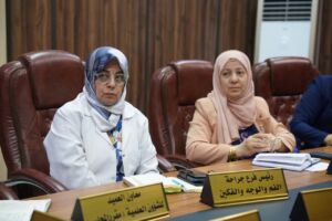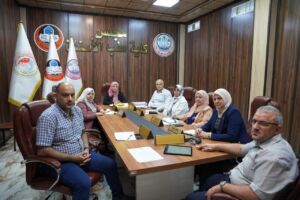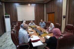 The meeting was chaired by the Dean of the College, Assistant Professor Dr. Neaam Riyadh Salim, with the attendance of the Associate Dean for Scientific Affairs, the Associate Dean for Administrative Affairs, and the Heads of the Scientific Departments.