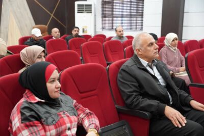 The workshop was presented by Assistant Lecturer Salim Rabee Khallaf from the College of Environmental Sciences, with the attendance of Assistant Professor Dr. Neam Riyadh Saleem, Dean of the College, and Professor Dr. Ali Rajeh, Associate Dean for Scientific Affairs.