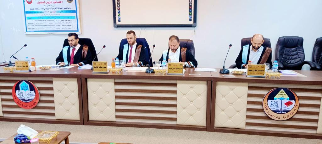 Master Thesis Viva in the College of Education for Pure Science entitled ” Investigation of Solitary and Periodic Wave Solutions in The Discrete Manakov System “The College of Education for Pure Science, University of Mosul, has done the Master Thesis Viva entitled ” Investigation of Solitary and Periodic Wave Solutions in The Discrete Manakov System”,On Wednesday, October 12, 2022, the College staff including the respected Dean of the College, Assistant Professor Dr. Qais Ismail Ibrahim, the Honorable Scientific Associate and Administrative Associate, the Honorable Head of the Department of Mathematics, and a number of the college’s teachers were attended the viva. This study, presented by the Master student Ahmed Fawaz Idrees Al-Saffawi in the Department of Mathematics, propose two models of the discrete nonlinear Manakov system, the first is local which is known as the discrete Manakov system (DMS) and the other is nonlocal which is known as the nonlocal discrete Manakov system (NDMS), the latter is shown to admit spatial and temporal PT-symmetry which is a crucial property in physics that has received a lot of attentions in the studies of integrable nonlinear equations. The time evolution of solitary and periodic wave solutions in the two proposed systems have been numerically investigated, also the suitable initial conditions have been considered to construct bright-soliton, dark-soliton and periodic-wave solutions for both systems were taken into consideration. For this, the variational iteration method (VIM) was used to obtain the approximate solutions for the DMS and NDMS.The error analysis is carried out using least squares weighted function (LSWF) to show the accuracy and efficiency of the numerical method used in constructing different types of wave solutions.The Viva committee was chaired by Prof. Dr. Omar Saber Qassim/ University of Mosul / College of Computer Science and Mathematics and the membership of Asst. Prof. Dr. Aalan Jalal Abdel Qadir Mustansiriya University / College of Education, Lecturer Dr. Azzam Salah El-Din Younis, University of Mosul, College of Education for Pure Science and under the supervision and membership of Lecturer Dr. Sohaib Talal Hasan, University of Mosul, College of Education for Pure Science.
